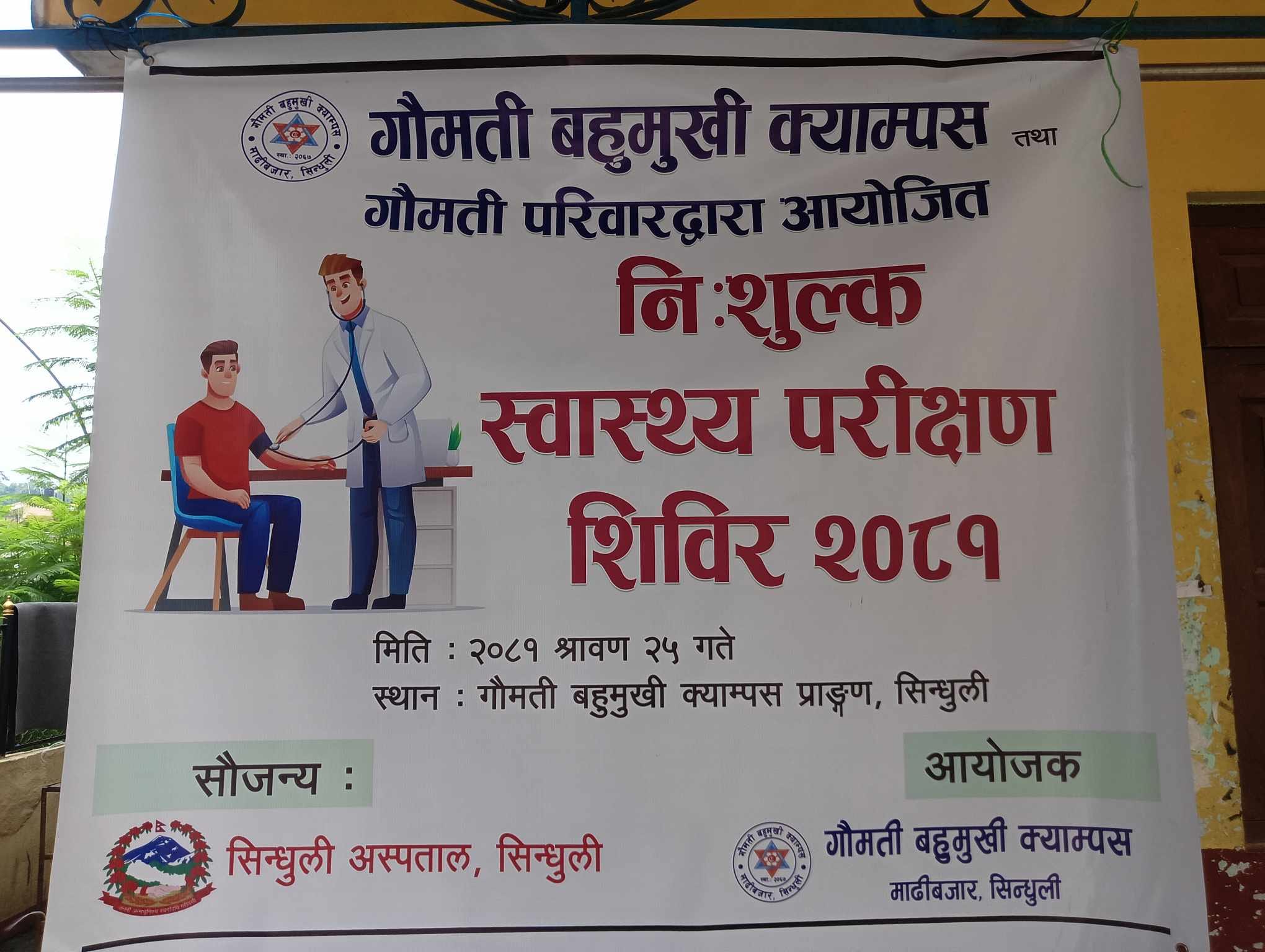 सिन्धुली – सिन्धुलीको कमलामाई नगरपालिका–६ स्थित गौमती बहुमुखी क्याम्पसमा विद्यार्थीहरुको निःशुल्क स्वास्थ्य परिक्षण गरिएकाे छ ।