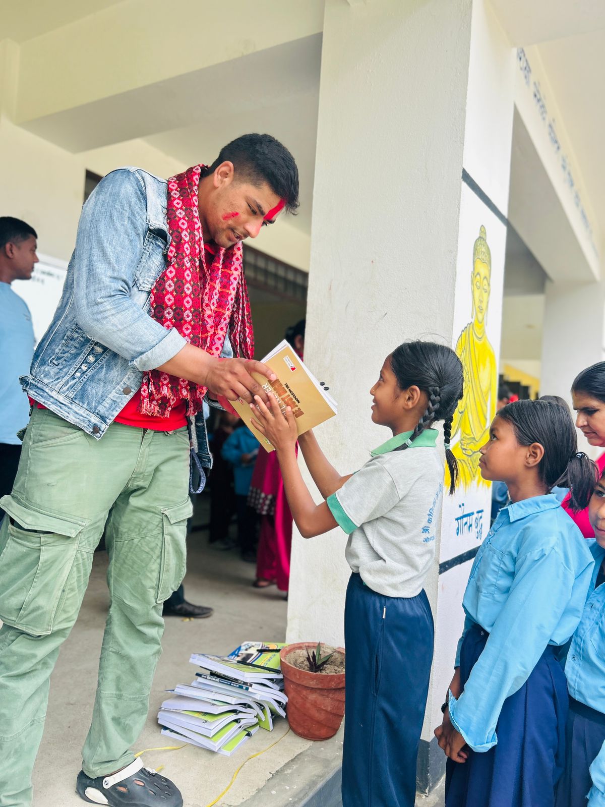 गर्नु भएको छ।जन्म दिनको अवसर पारेर आज बुधवार दाहालले दुई विद्यालयमा गरी १७० जना विद्यार्थीहरुलाई कापि र कलम वितरण गर्नु भएको हो।